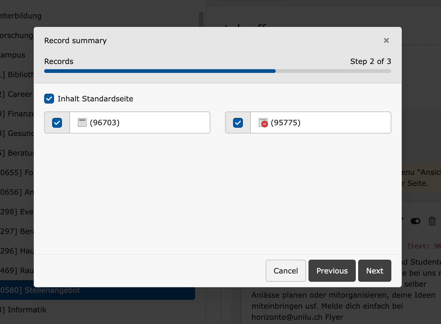 Danach die Elemente auswählen, welche übersetzt werden sollen und den Prozess abschliessen.